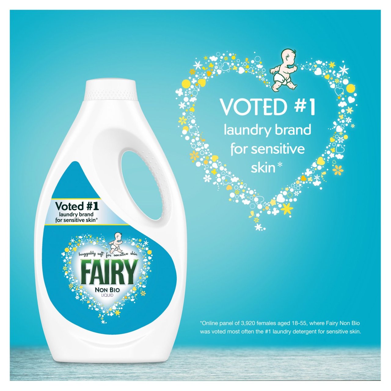 Discover the power of gentle care with Fairy Non Bio Washing Liquid. It is no surprise that Fairy Non Bio was voted no.1 laundry brand for sensitive skin*. Fairy Non Bio leaves clothes brilliantly clean and feeling gentle next to precious skin. Unlike washing powder, washing liquid is versatile, easy to use, and good for pre-treating heavily soiled clothes too. Just pop the right amount in a dosing cap and add that direct to the heart of your wash, so all those magical Fairy ingredients can get to work straight away. Use with Fairy Fabric Conditioner for the softest combination for your baby's skin. *Online panel of 3347 females aged 18-70.