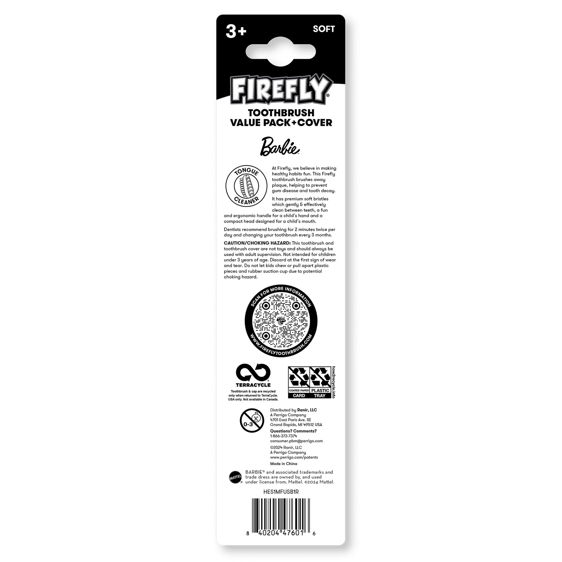 Firefly Kids Barbie Manual Toothbrush with Cover, Soft, 2 Count