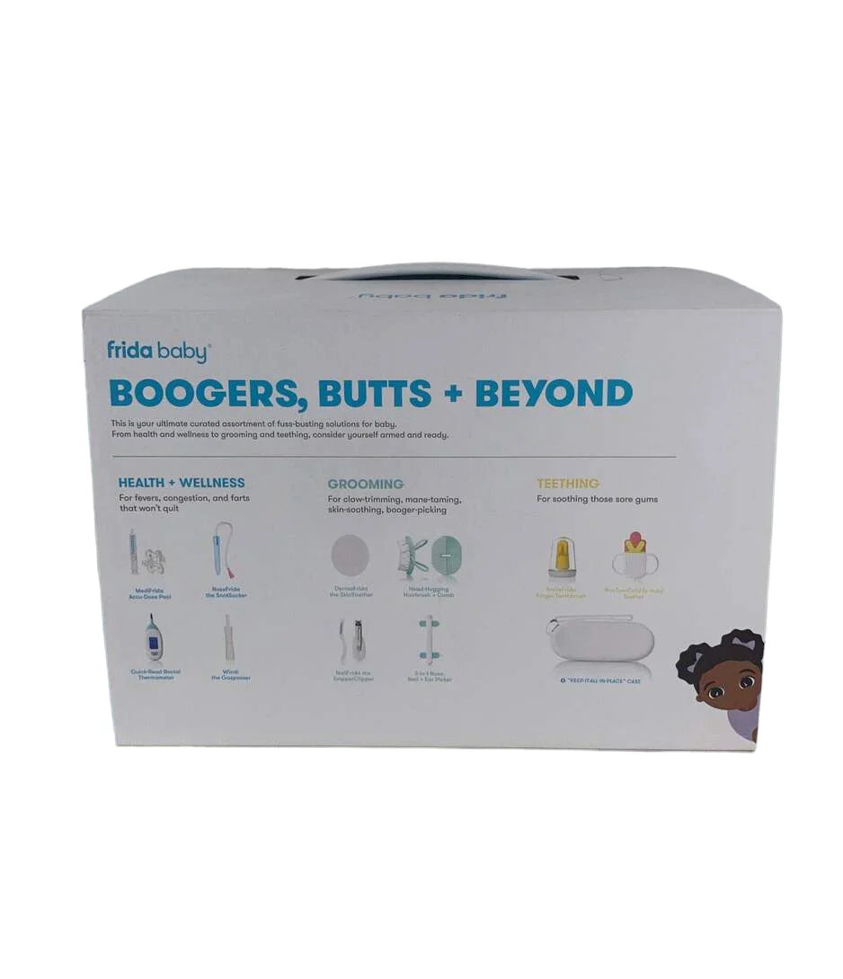 "This set will have you covered with everything you need for your baby. Includes 10 essentials such as snot sucker, nail clippers, gaspasser, thermometer finger toothbrush, accu-dose Paci, skin soother, brush & comb combo and teether."