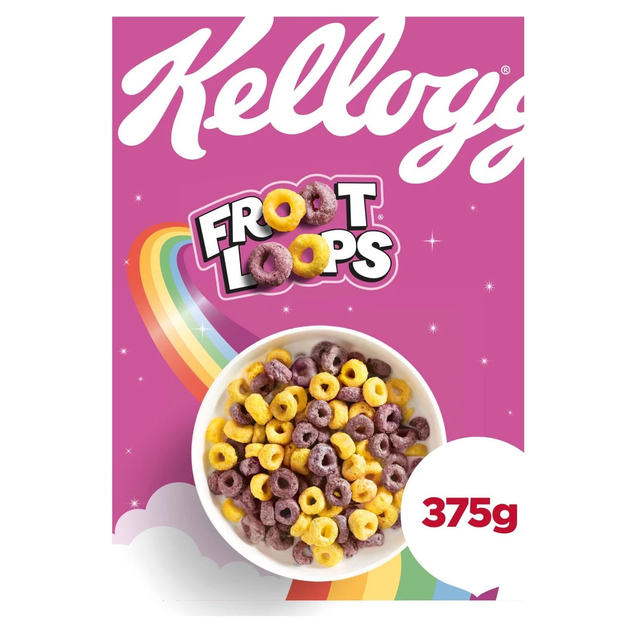 Start your day with Kellogg's Froot Loops breakfast cereal. Brighten up your breakfast table with this breakfast cereal made with natural flavours and colours. Enjoy the Frooty flavours of the colourful ring-shaped cereal.