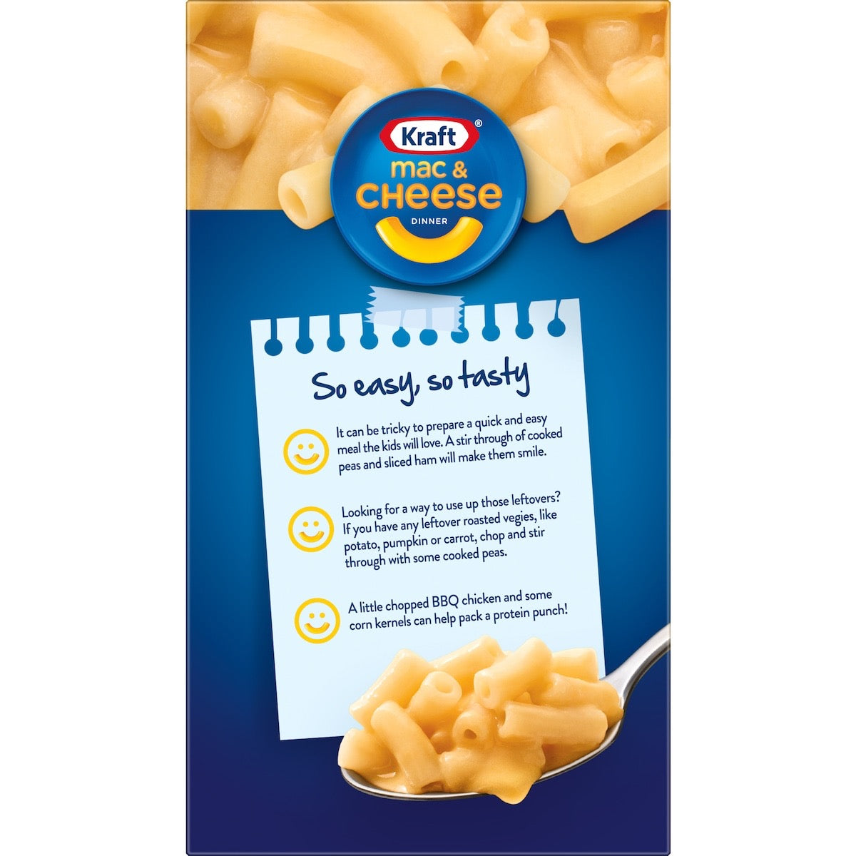 Macaroni with three types of cheese is sure to produce triple the smiles in your family. Kraft Mac & Cheese Three Cheese Sauce Pasta is the best snack, meal or side dish that the whole family will love. Kraft Mac & Cheese Three Cheese Sauce Pasta is produced with no artificial colours or flavours. Stir through some barbecue chicken or roast veggies for something special, or enjoy it as a warming meal after a busy day. This easy meal is also great for family dinners as the main dish or as a side.