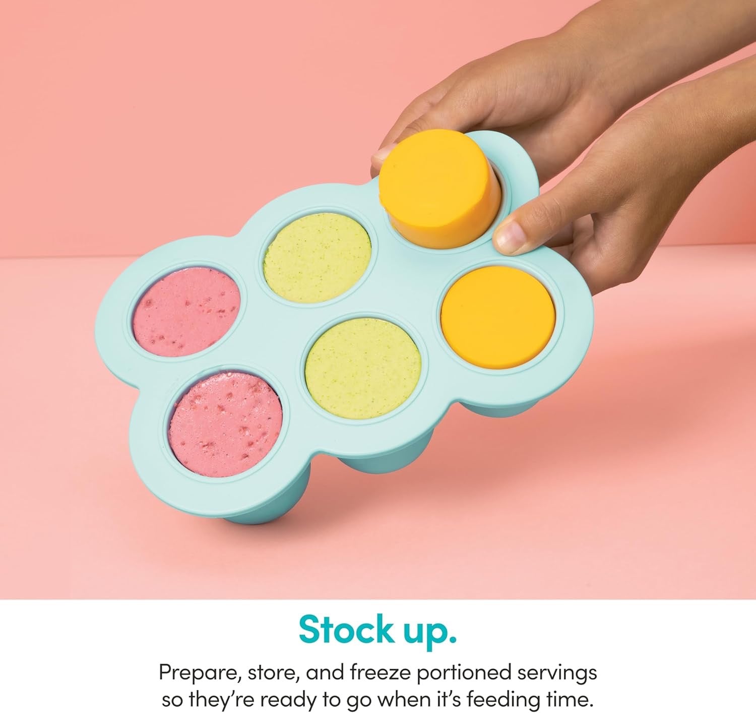 - Included components: Motor base, batch bowl, storage containers with a date dial to track freshness, 12 ounce silicone tray