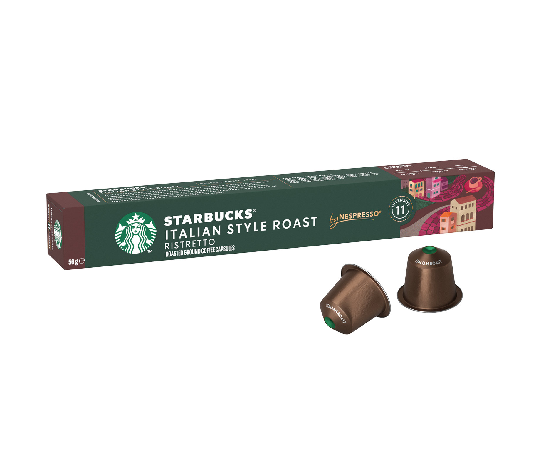 Enjoy Starbucks® Italian Style Roast by Nespresso® at home with this tube of coffee capsules, compatible with Nespresso® coffee machines.