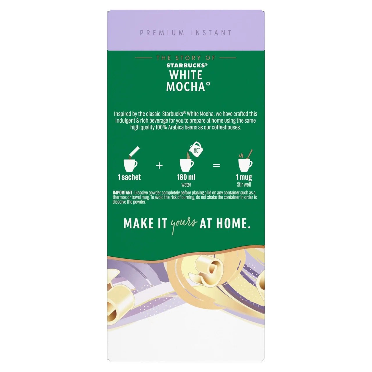 Inspired by the classic Starbucks® White Mocha, we've crafted this indulgent & rich beverage for you to prepare at home using the same high quality 100% Arabica beans as our coffeehouses. Expertly blended together with dairy milk and our indulgent white mocha flavour, it is topped with a soft layer of foam for you to enjoy a deliciously familiar Starbucks® beverage.