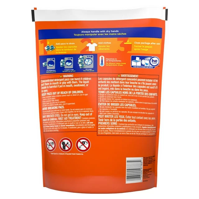 - Use 1 pac for small/medium loads, 2 pacs for large loads, or 3 pacs for extra-large loads